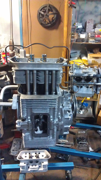 AT RIGHT: This engine after completing the long-block stage and before deciding to build it out as a turn-key. It has a stock 6v flywheel and takes a stock tachometer cable attached at the oil pump.