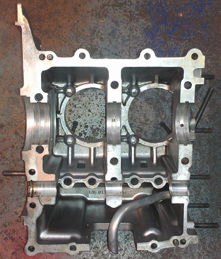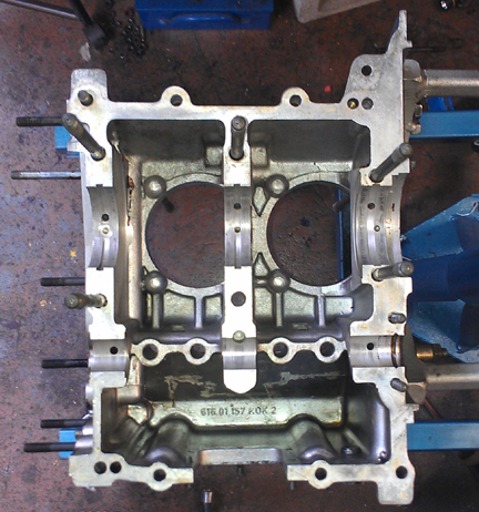 ABOVE: Cleaned and ready to go. The crankshaft bearing bores remain their original "standard" size - no align-bore needed!