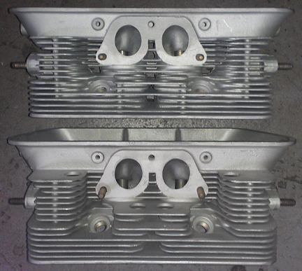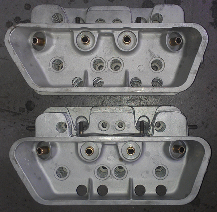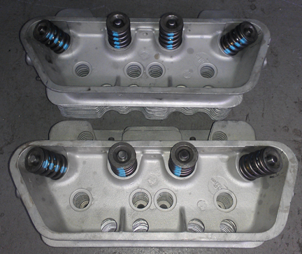 ABOVE RIGHT: No broken fins, no cracks, no bad threads - these heads are in fine shape. ONE exhaust stud needed replacement.