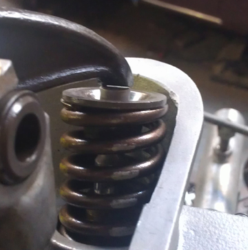 However, in this case, all the springs were virtually identical - a somewhat unusual circumstance. ...Of course, each valve and retainer are position-specific through the shimming process as the spring-heights are set. This close-matching of spring tensions helps the driver know when they're over-revving because all the valves will tend to float at exactly the same time, thus sending the clear signal of a drop-off in power. When one or two valves float before the others, the driver may not realize they're harming the engine and continue on, getting into trouble!