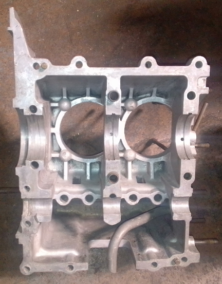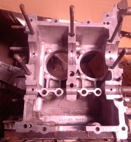 The core's crankshaft was an incorrect choice, an "A", while the engine is a B. They were known to Porsche to crack under heavy service so, as the engines got more powerful, Porsche moved on to the B crank in the summer of '59. However, while better, even these cracked frequently enough that Porsche then increased the middle main bearing journals nominal size from 50mm to 55mm and this helped a good bit.