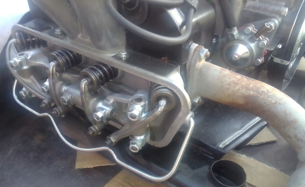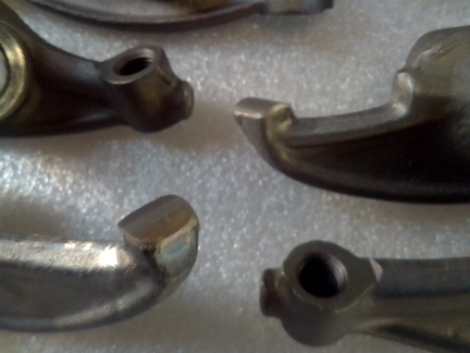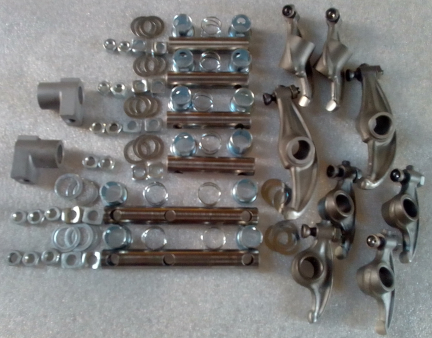 AT RIGHT: These are the rockers, shafts, and all the additional hardware actually fitted. The rockers have been blasted clean and "refaced" to remove The shafts have been polished. Note that the shafts look dark due to lighting and how the cell-phone-camera doesn't handle low-light conditions well. When I tried the flash, the brightness of the shaft hardware made the rockers look dark!