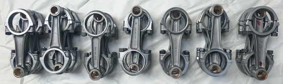 The rods I selected are the next-to-last type and perfectly fine for this application. So, the rods got the usual treatment of cleaning, checking, rebushing, resizing the big end, boring the bushing to ensure all four have the same length and then balancing for both end-for-end and total weight weight. Thus, I then have the crankshaft ready to go, as seen here.